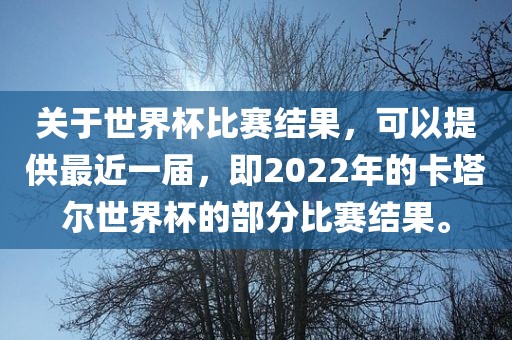 关于世界杯比赛结果,可以提供最近一届,即2022年的卡塔尔世界杯的部分比赛结果。