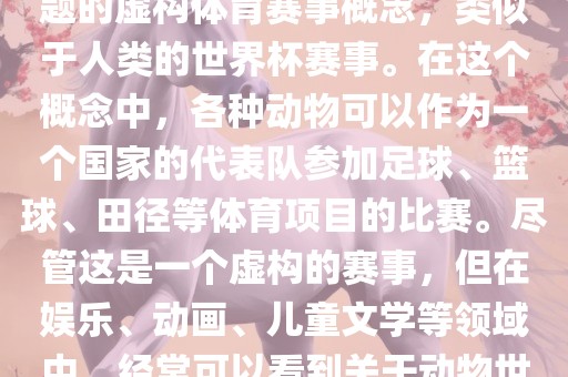动物世界杯是一个以动物为主题的虚构体育赛事概念,类似于人类的世界杯赛事。在这个概念中,各种动物可以作为一个国家的代表队参加足球、篮球、田径等体育项目的比赛。尽管这是一个虚构的赛事,但在娱乐、动画、儿童文学等领域中,经常可以看到关于动物世界杯的故事和情节。