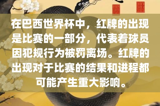 在巴西世界杯中,红牌的出现是比赛的一部分,代表着球员因犯规行为被罚离场。红牌的出现对于比赛的结果和进程都可能产生重大影响。